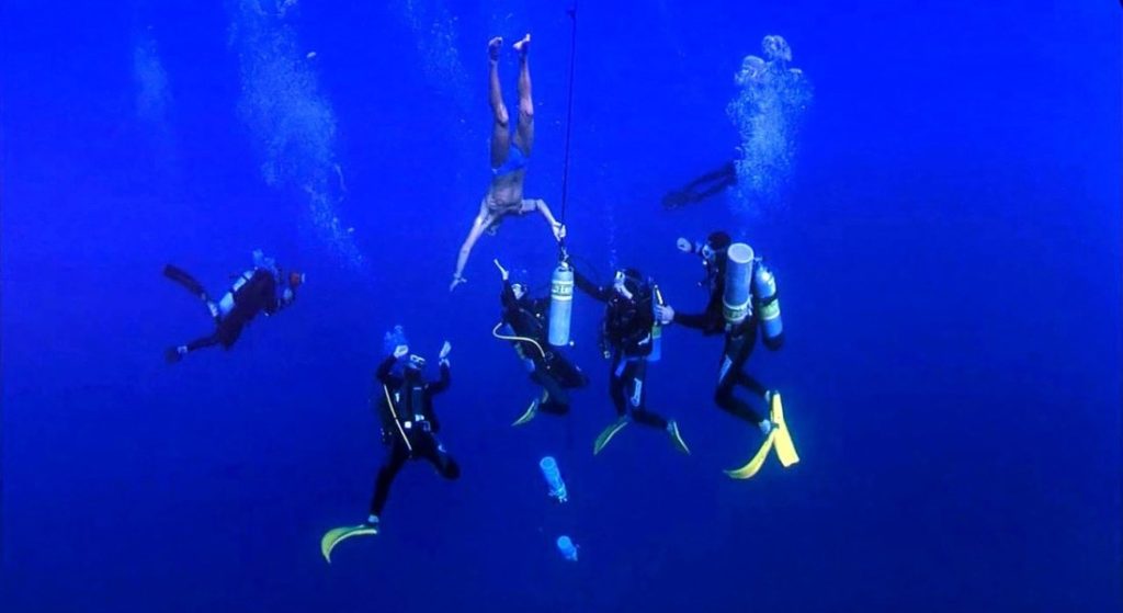 La historia es de unos buzos que se desafiaron mutuamente con el fin de hasta cuanto podían profundizar en el océano con una sola bocanada de aire. Más allá del desafío lo más importante es todo lo que este envolvía, preparativos, imágenes etc. Las imágenes son realmente hermosas.